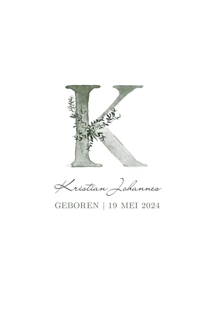 Babykaartje met initiaal en takje voor jongen