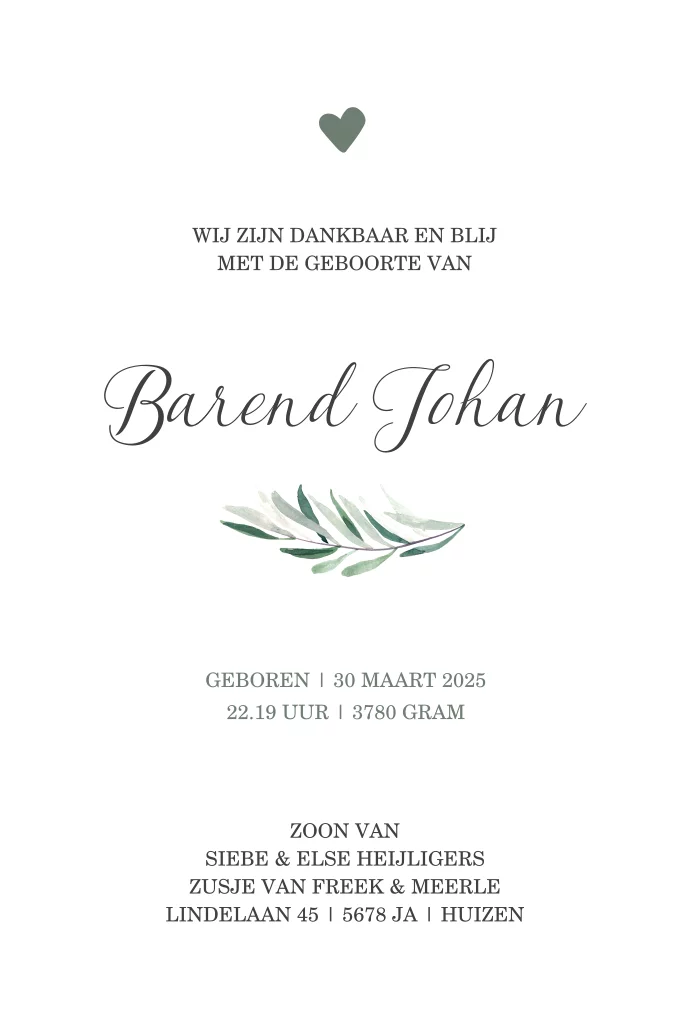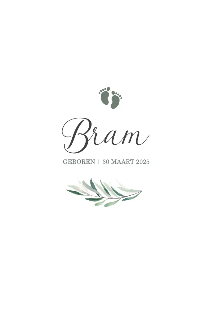 Botanisch geboortekaartje jongen met groene voetjes