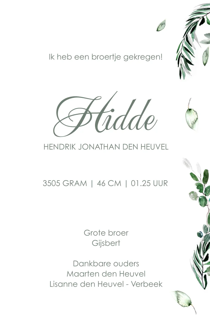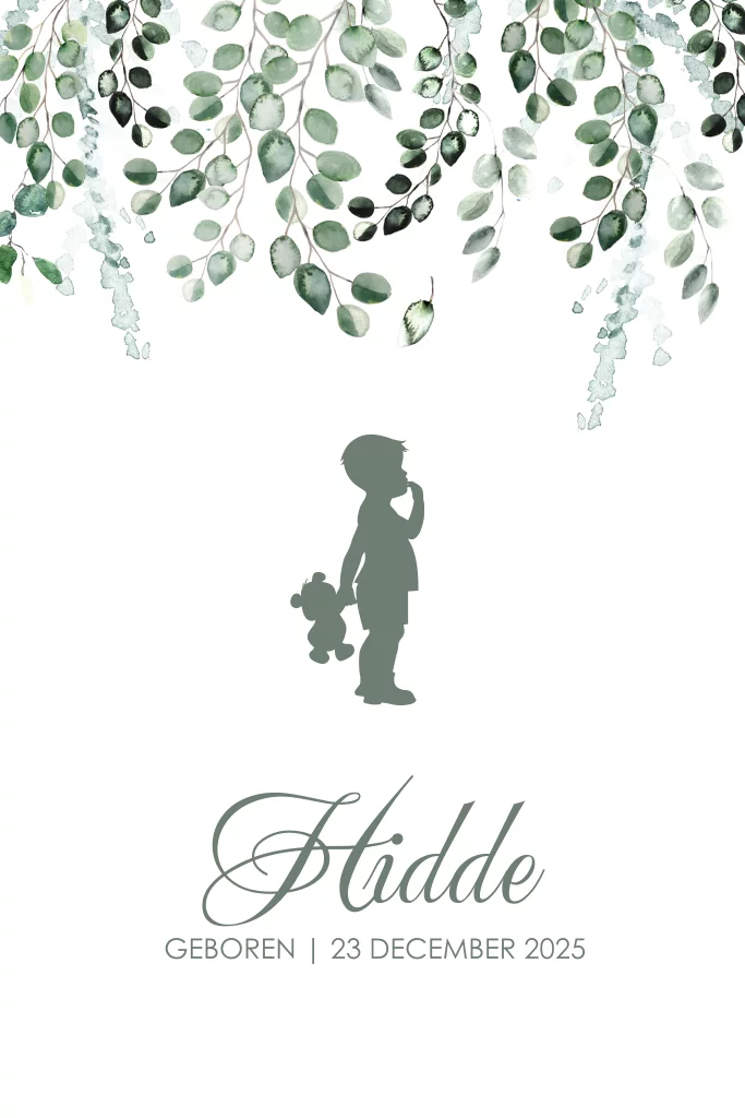 Botanisch geboortekaartje broertje met groen ssilhouet