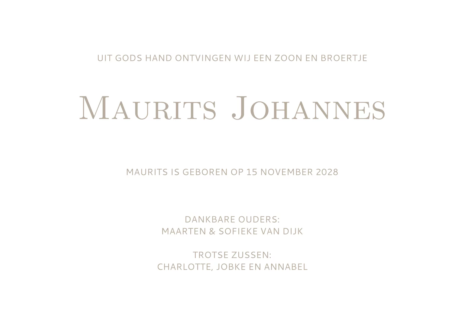 Christelijk geboortekaartje voor jongen in taupe