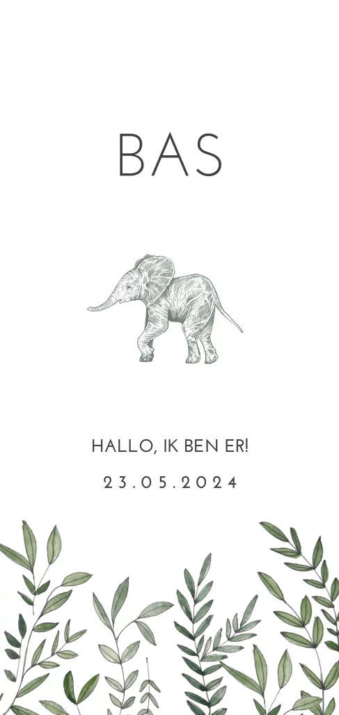 Botanisch geboortekaartje jongen met olifantje