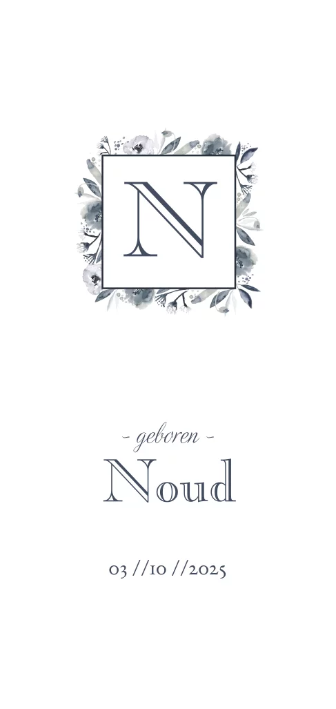 Een stijlvol geboortekaartje met mooi initiaal. Dit geboortekaartje wordt gedrukt op het formaat 10 bij 21 cm.