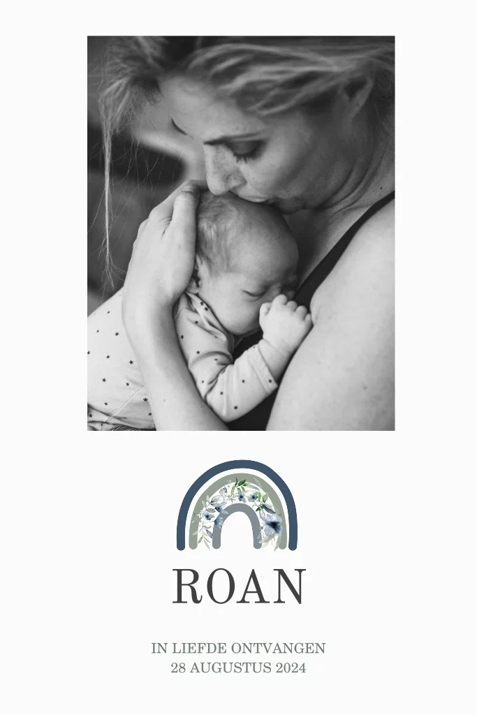 Op dit regenboog geboortekaartje kun je eenvoudig een foto uploaden. De foto kun je bijsnijden.
