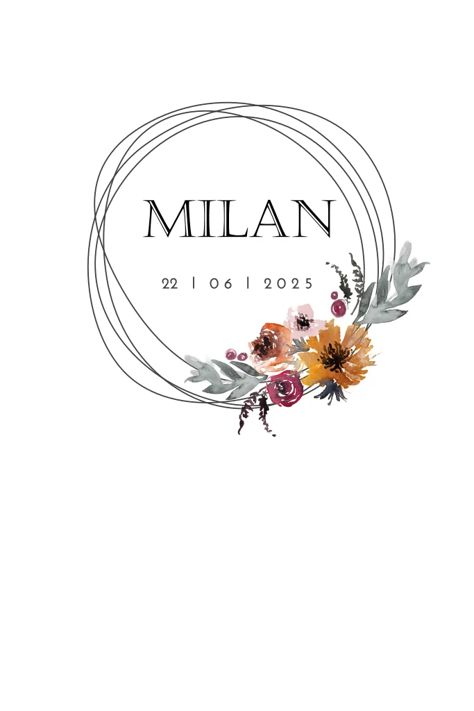 Geboortekaartje jongen met geometrisch figuur en herfst bloemen