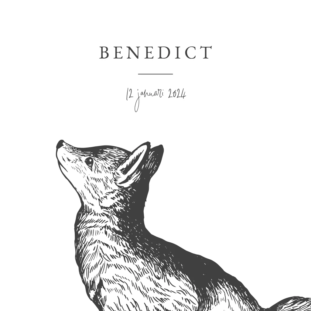 Een jongens geboortekaartje met op de voorkant een vosje. Te bestellen in meerdere formaten.