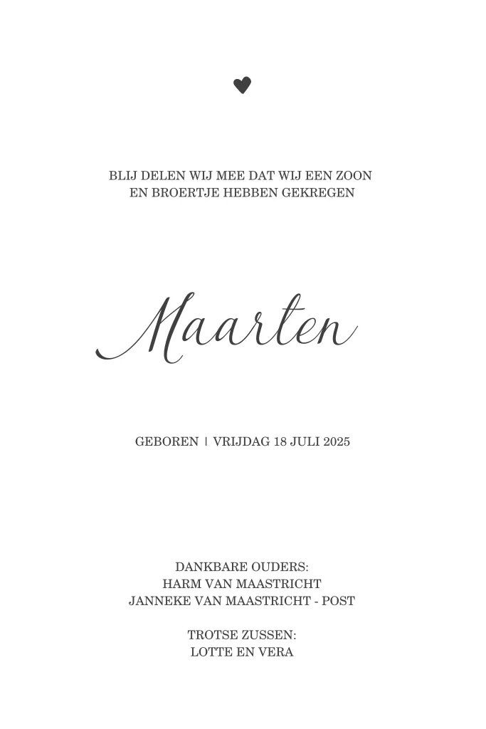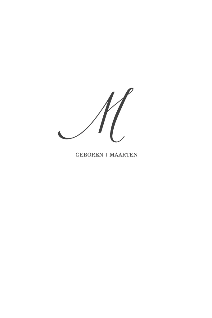 Plaats het initiaal van jullie zoontje op dit klassieke geboortekaartje. Dit doe je in de editor waar je alle aanpassingen kunt maken.