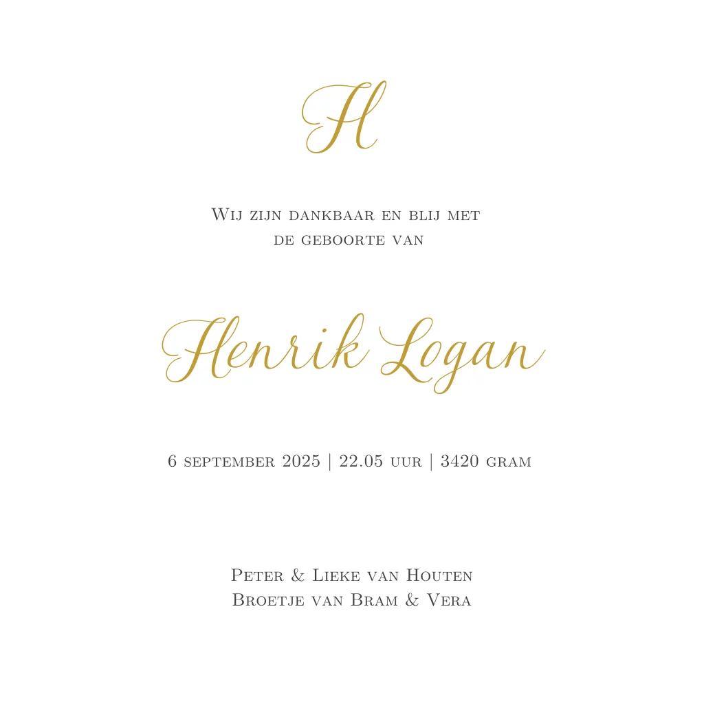 Klassiek geboortekaartje zoon met goudkleur strikje