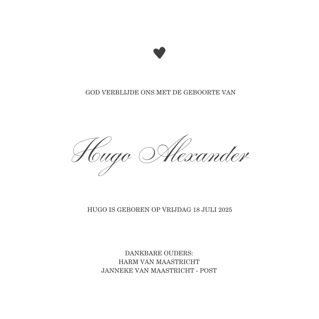 Een klassieke geboortekaartje met een mooie sierlijke initiaal van jullie zoontje.