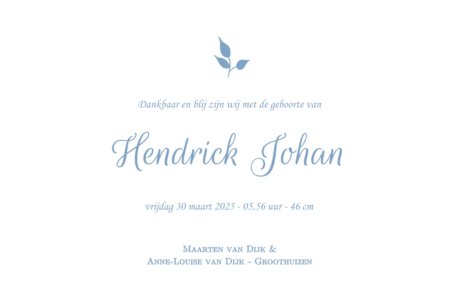 Een dubbel klassiek geboortekaartje die je in meerdere formaten kunt bestellen. Wij adviseren het formaat 10 bij 15 cm voor het mooiste resultaat. Dit geboortekaartje kan ook met folie bedrukt worden.