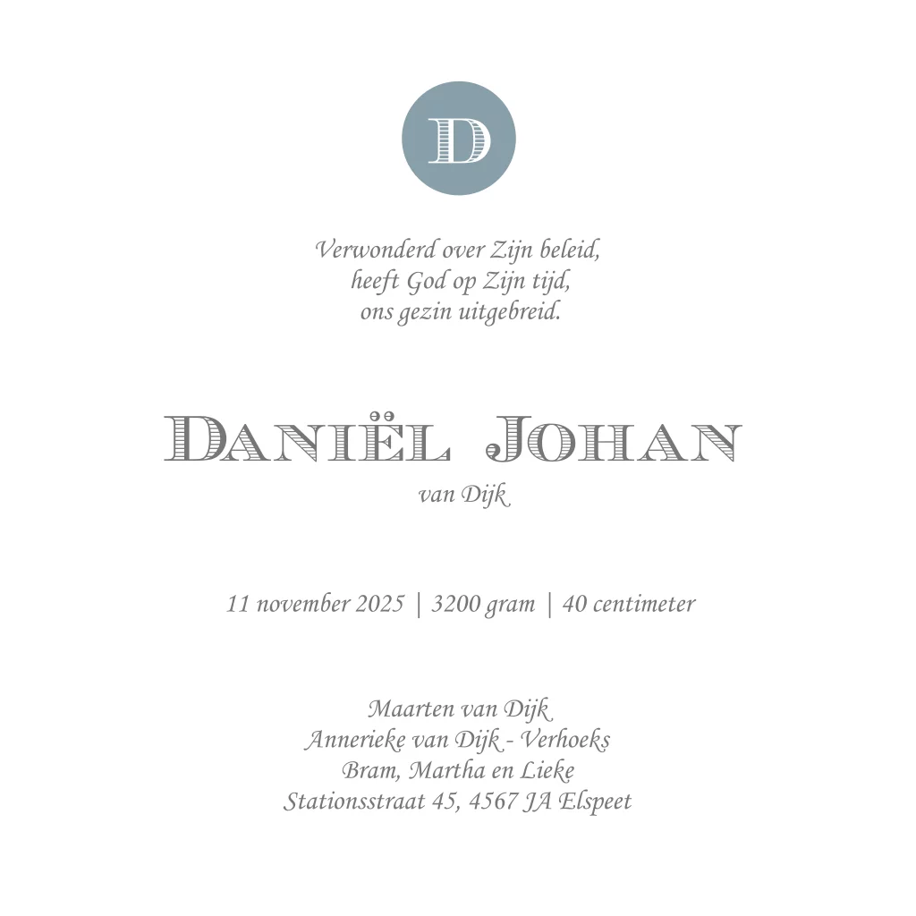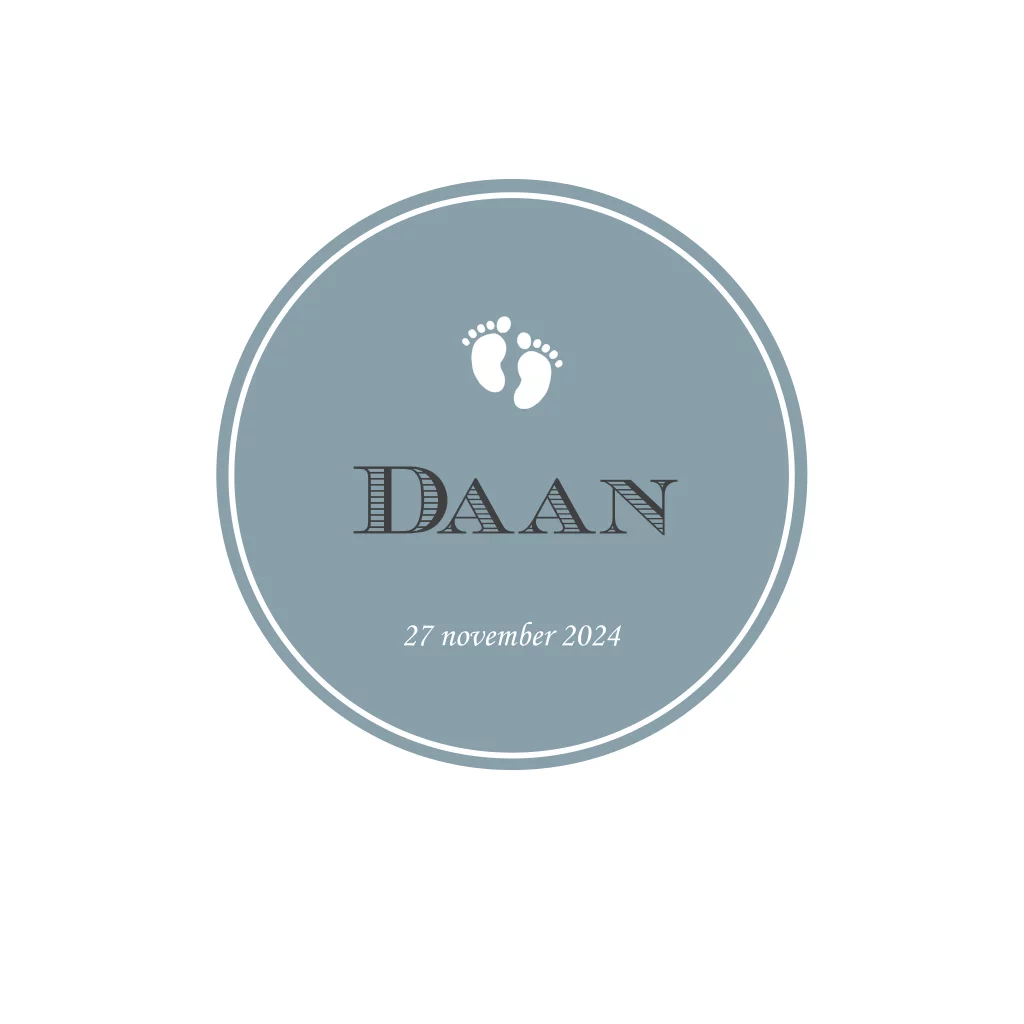 Een klassiek geboortekaartje met lieve voetjes voor een jongen. De blauwe cirkel zou je ook een andere kleur kunnen geven in de editor, zodat je een origineel klassiek geboortekaartje maakt die niemand heeft.