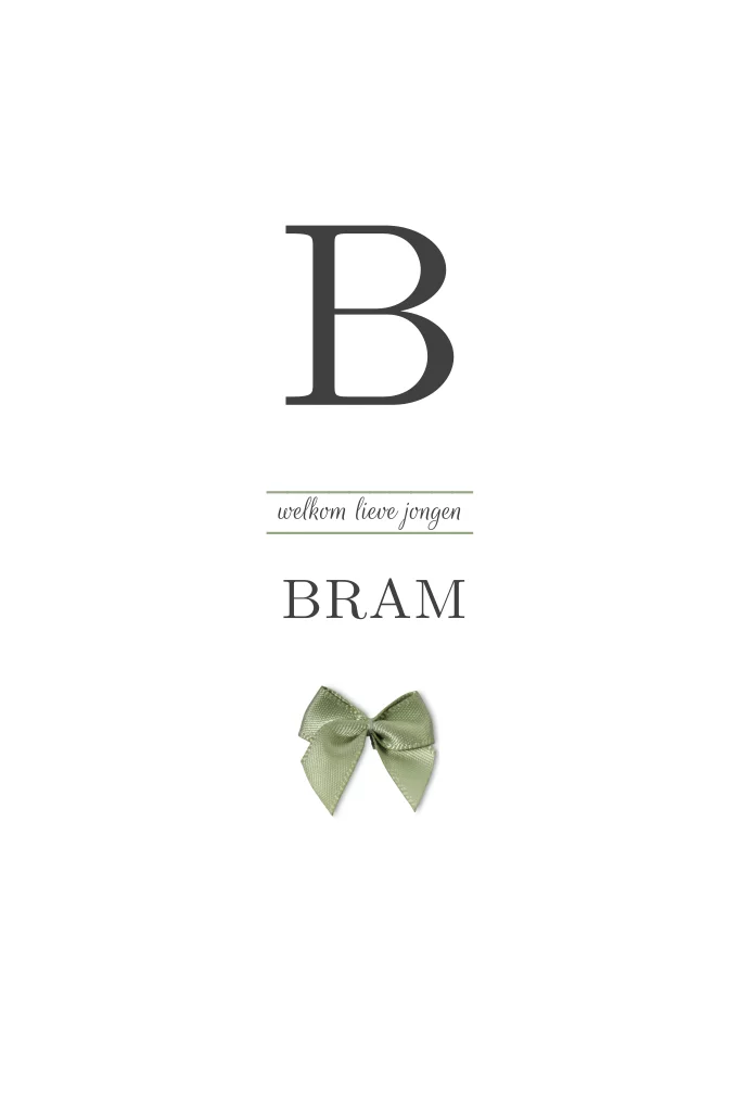 Klassiek geboortekaartje strikje en initiaal voor jongen