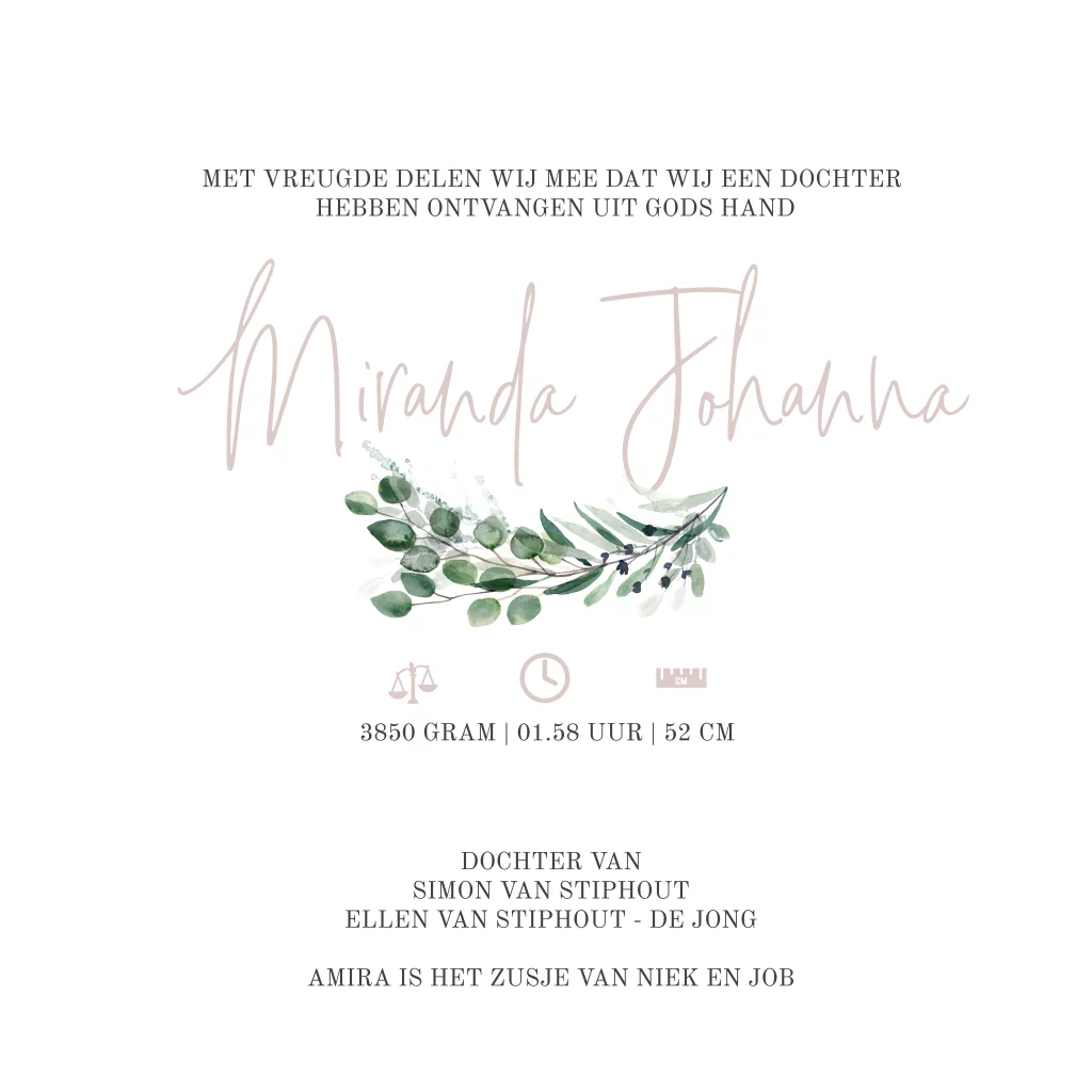 - Als het geboortekaartje naar wens is kun je enveloppen vooraf bestellen.