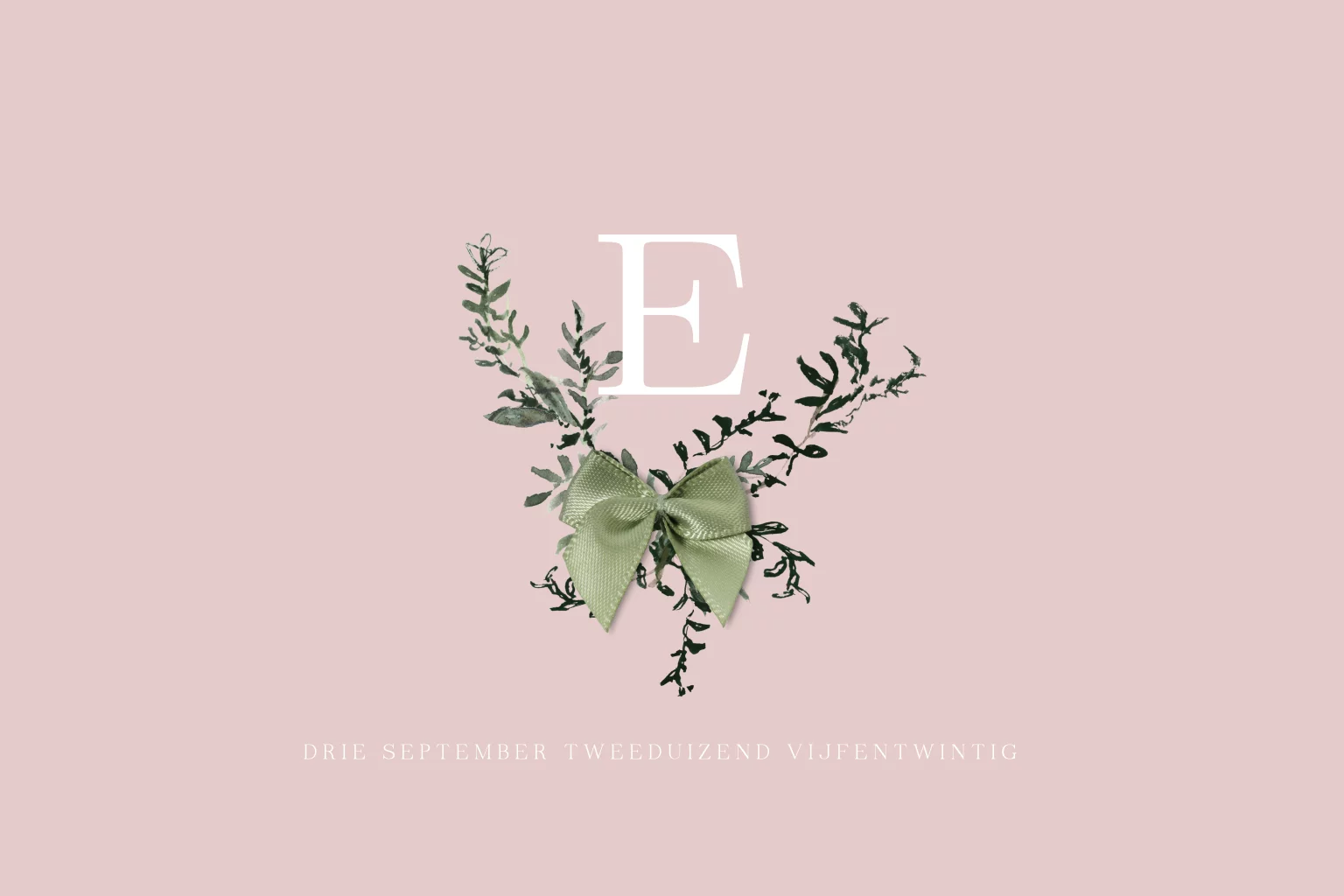 Geboortekaartje meisje met blaadjes, echt strikje en initiaal