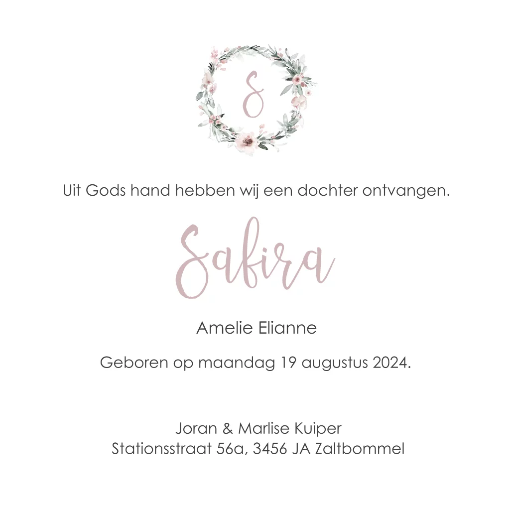 Lief geboortekaartje om zelf te maken voor jullie dochtertje. Mooi met een oudroze envelop.