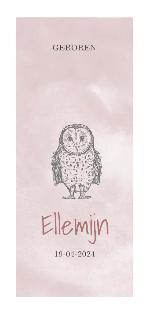 Geboortekaartje meisje met uiltje en roze achtergrond