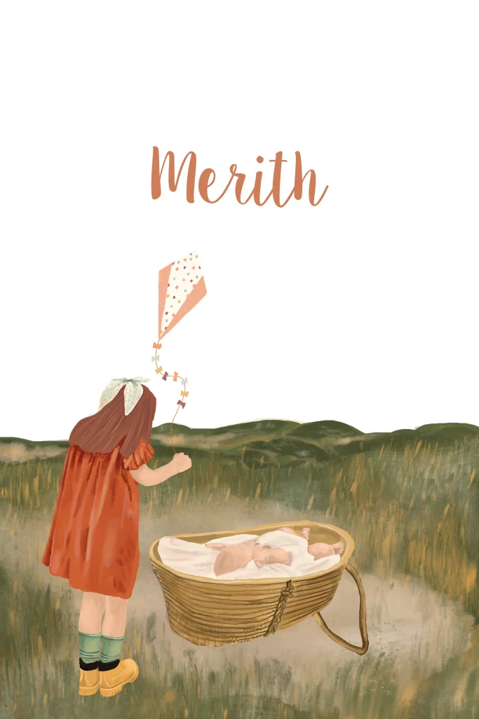 Lief geboortekaartje voor een meisje of jongen. Naast de mand staat een zus met een vlieger. De kaart is naar wens aan te passen, zodat hij helemaal bij jullie past!