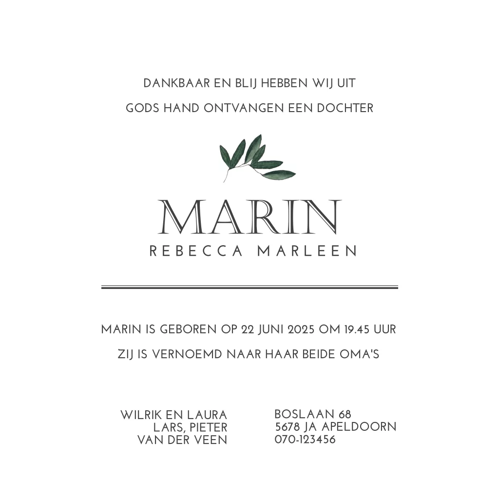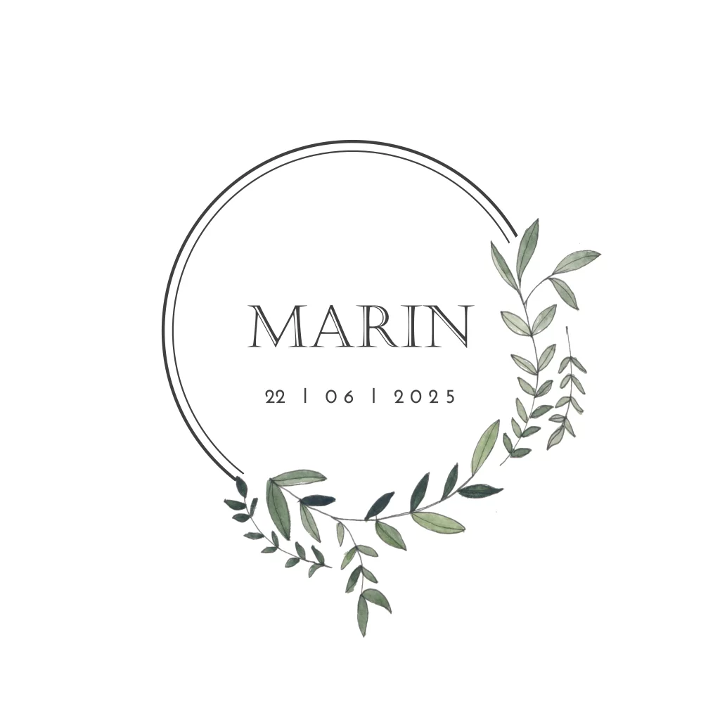 Plaats in deze cirkel de naam van jullie dochtertje. Je kunt in de editor eenvoudig alle aanpassingen doen. Mooi met een groene envelop.