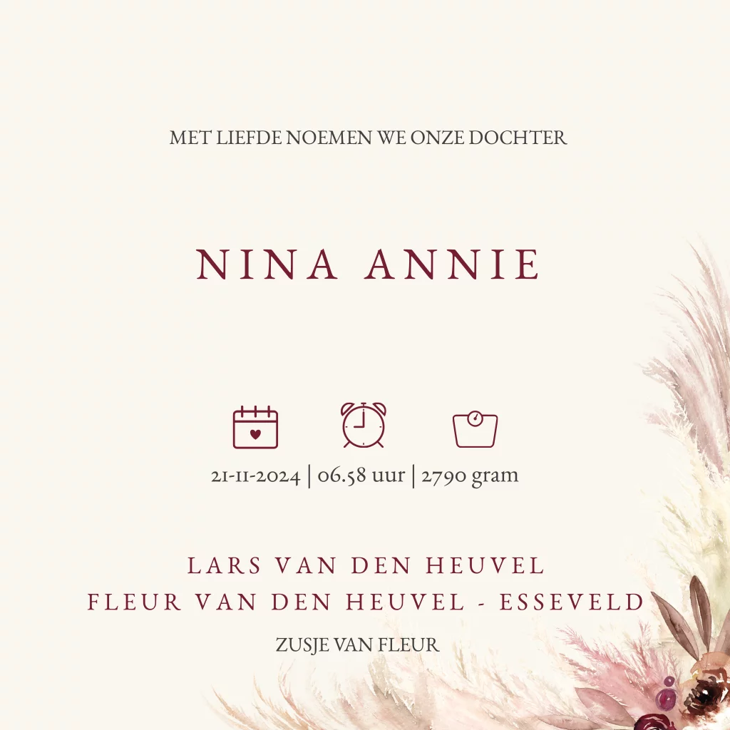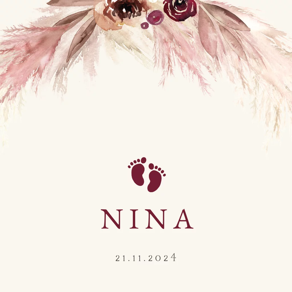 Laat de trend van droogbloemen en roesttineten terug komen in het geboortekaartje. De lieve voetjes maken het een stoer en lief geboortekaartje.