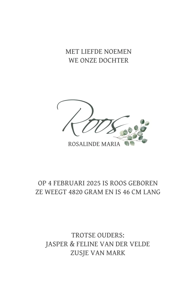 Plaats het takje op een mooie positie bij de naam van jullie kindje. Zo maak je altijd een origineel geboortekaartje.