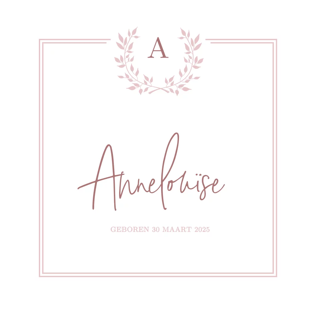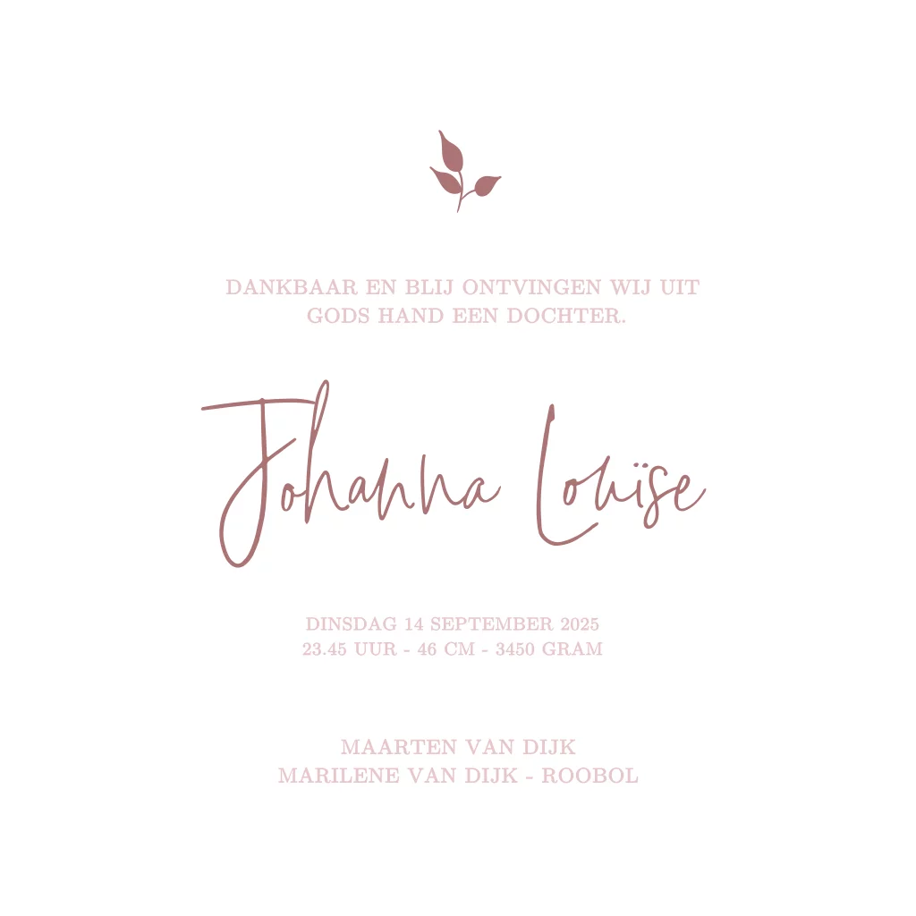 Klassiek geboortekaartje voor een meisje. Pas de teksten aan in de editor voor jullie dochtertje. Je kunt ook voor folie kiezen.