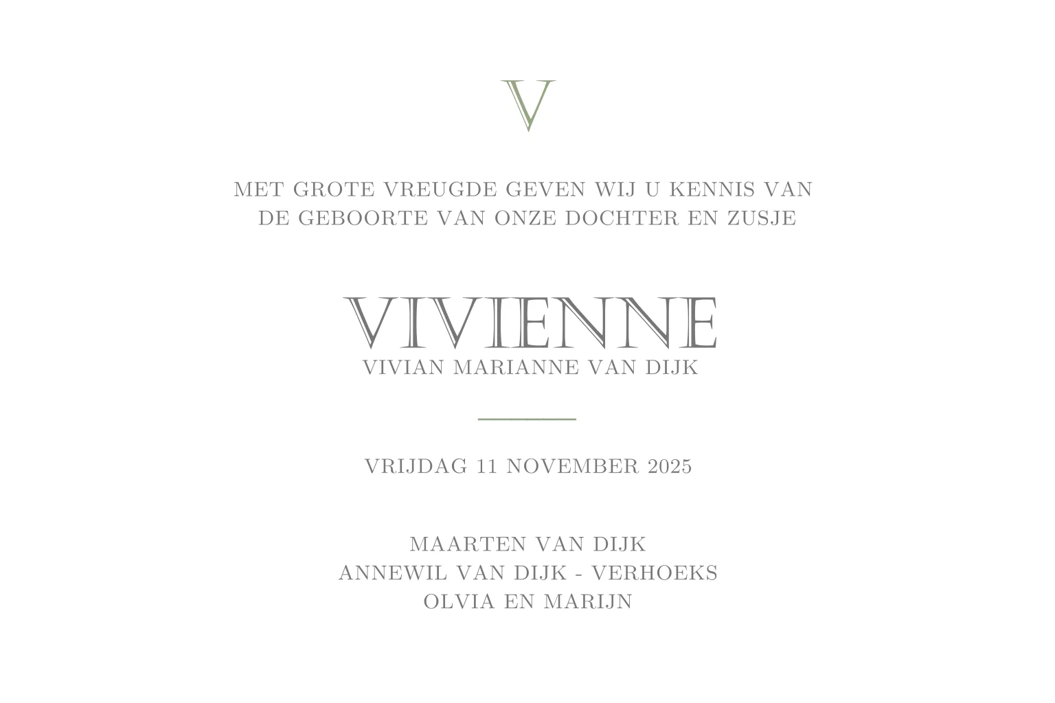Plak een stoer groen strikje op dit klassieke geboortekaartje voor een meisje. Je kunt ook een andere kleur strikje kiezen.