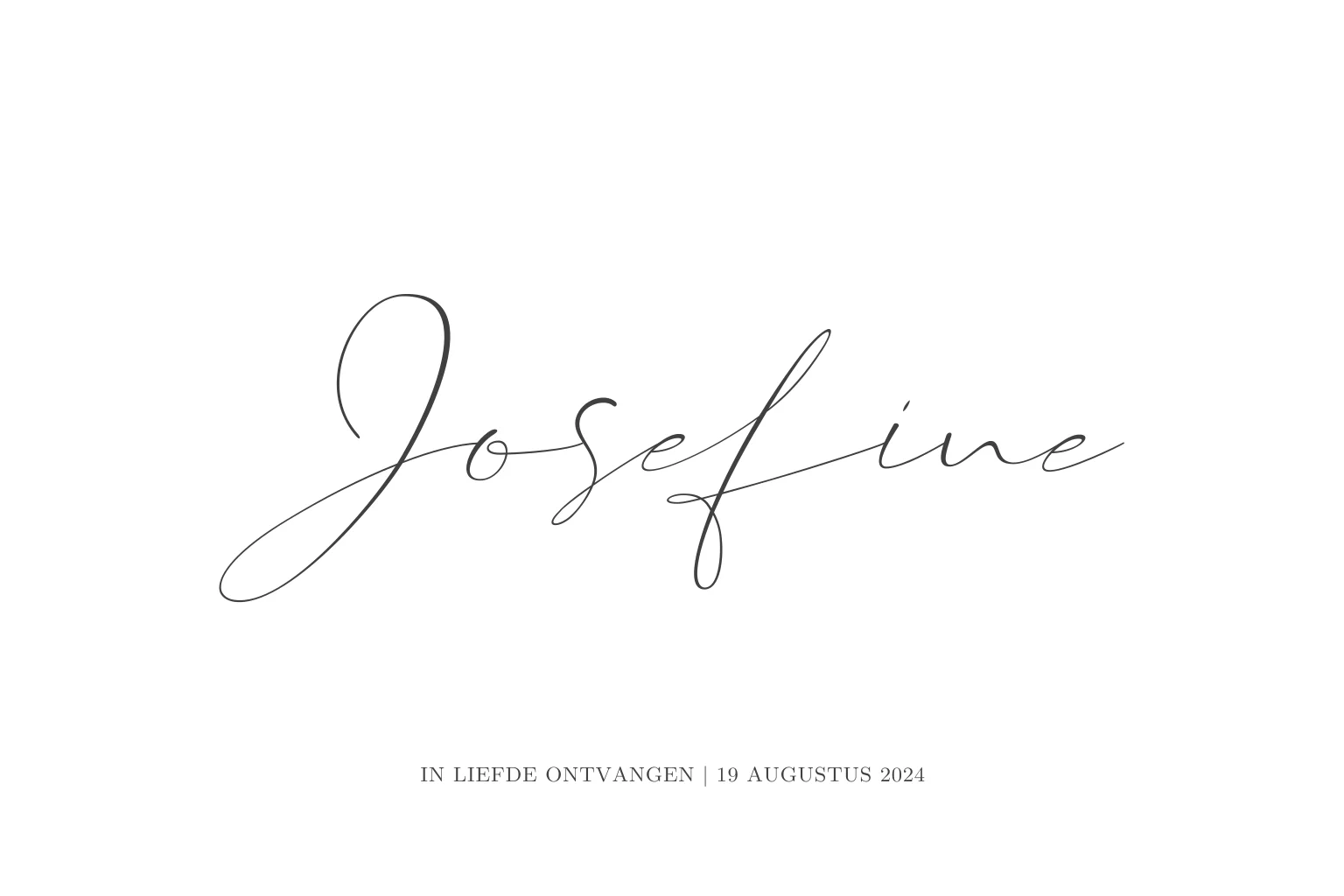 Een klassiek geboortekaartje met sierlijke letters. Een mooie stevige kaart van 600 gram papier. Dit is een unisex kaartje dus kan ook voor een jongen gebruikt worden. In de editor kun je de teksten en lettertypes aanpassen zodat je altijd een origineel klassiek geboortekaartje maakt.
