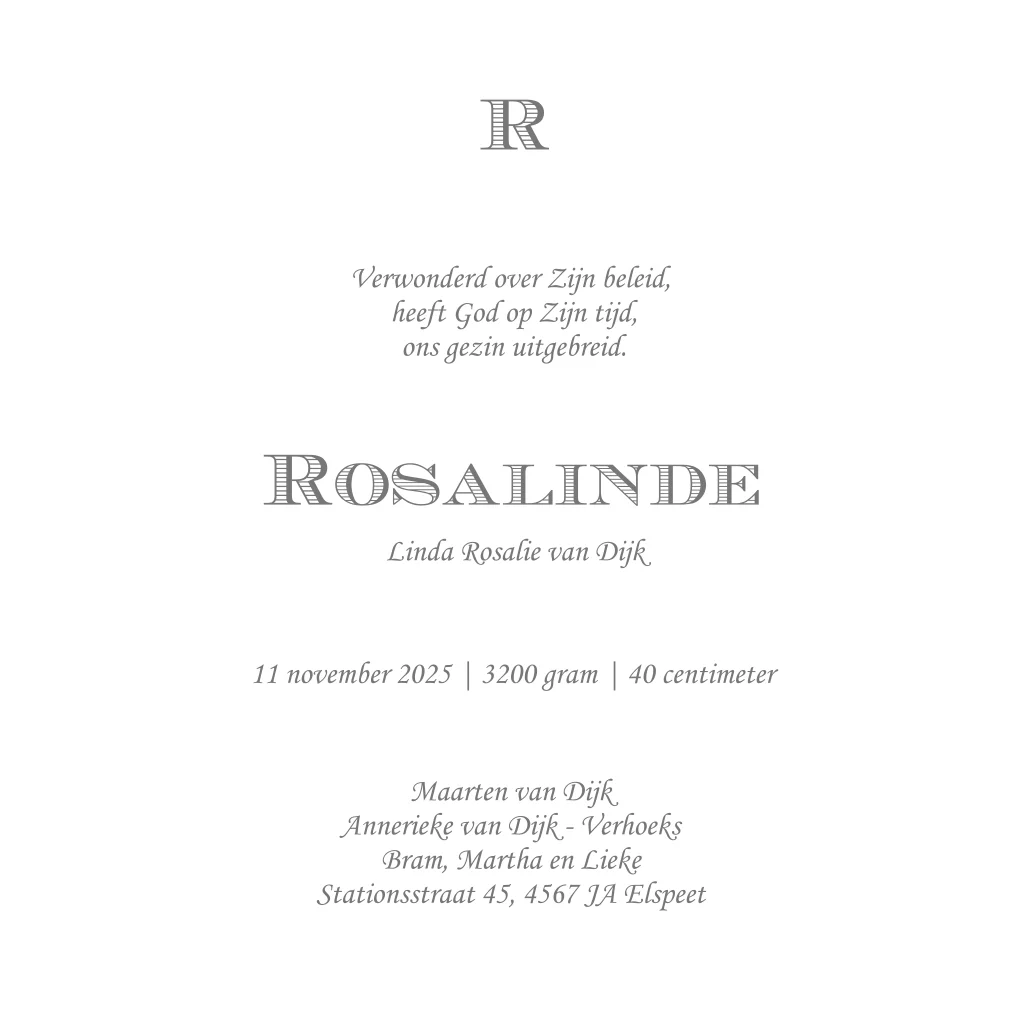 - Als het geboortekaartje naar wens is kun je enveloppen vooraf bestellen.