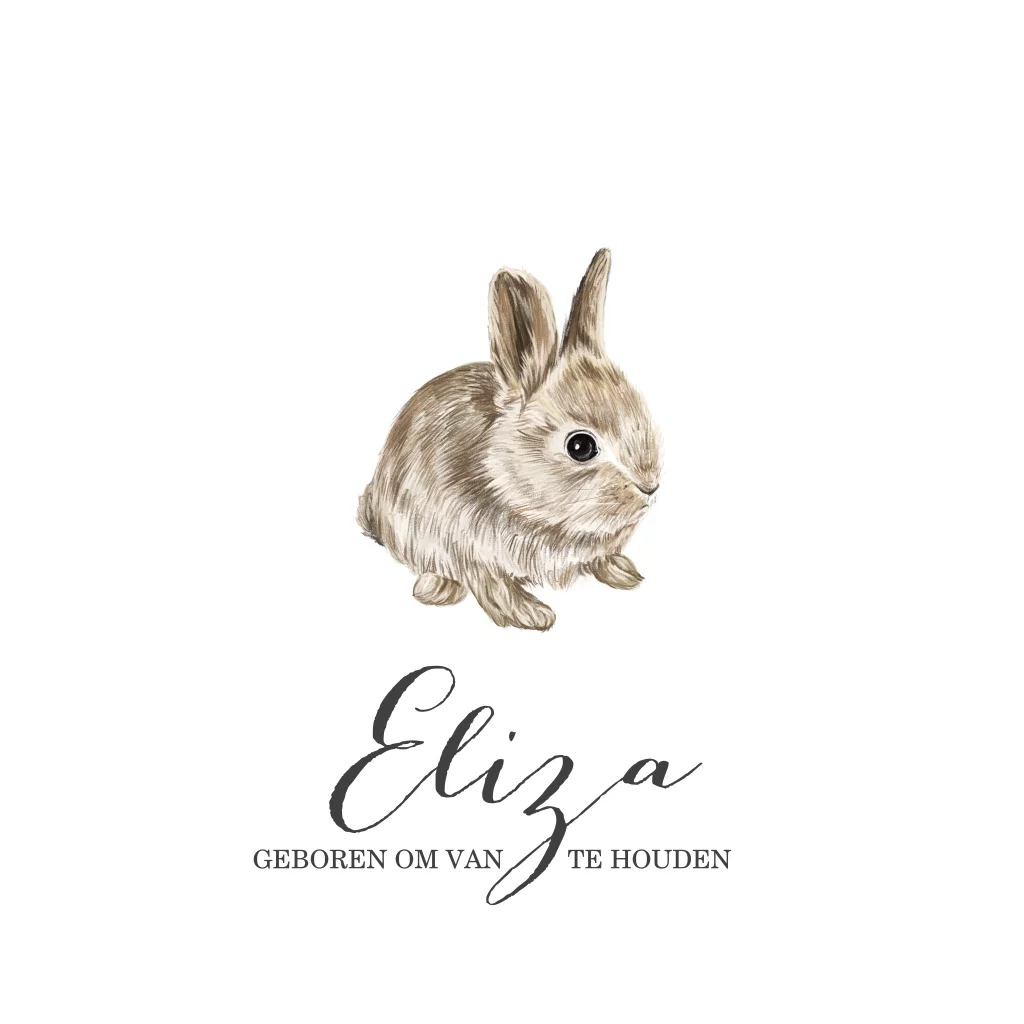 Een schattig konijntje op de voorkant van jullie geboortekaartje.