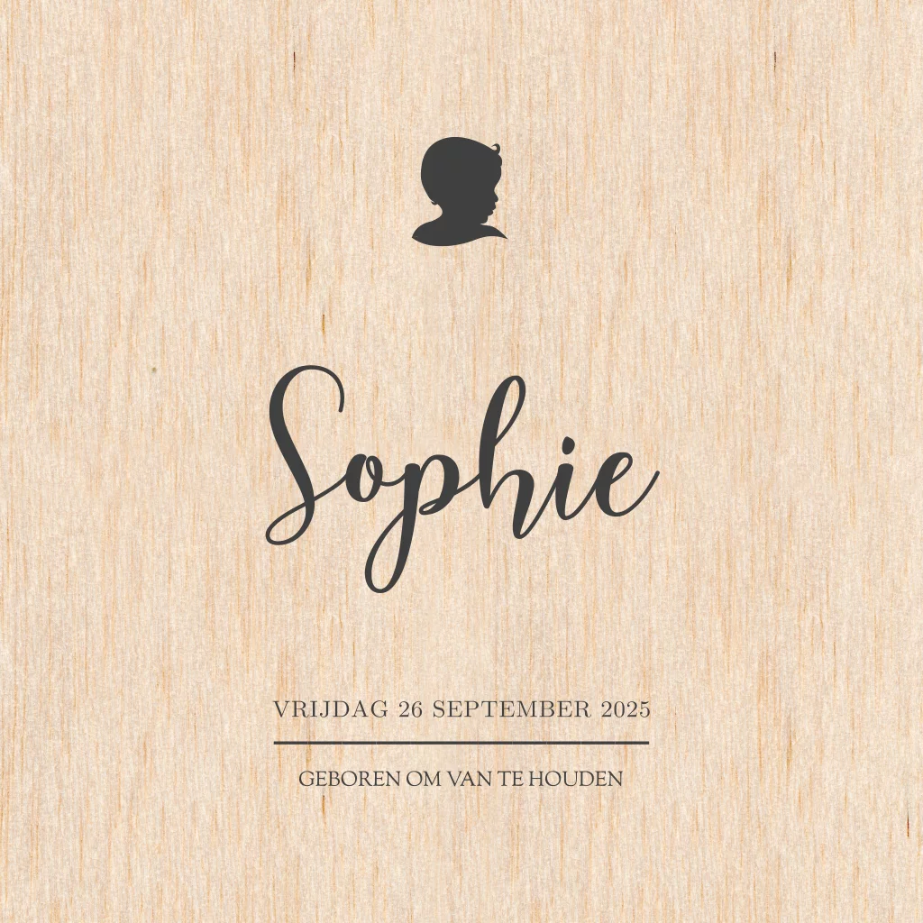 Dit klassieke houten geboortekaartje kun je helemaal naar eigen wens aanpassen in de kaartopmaker. Dit geboortekaartje wordt op écht berkenhout van 1 mm gedrukt en heeft het vaste formaat 13 bij 13 cm.