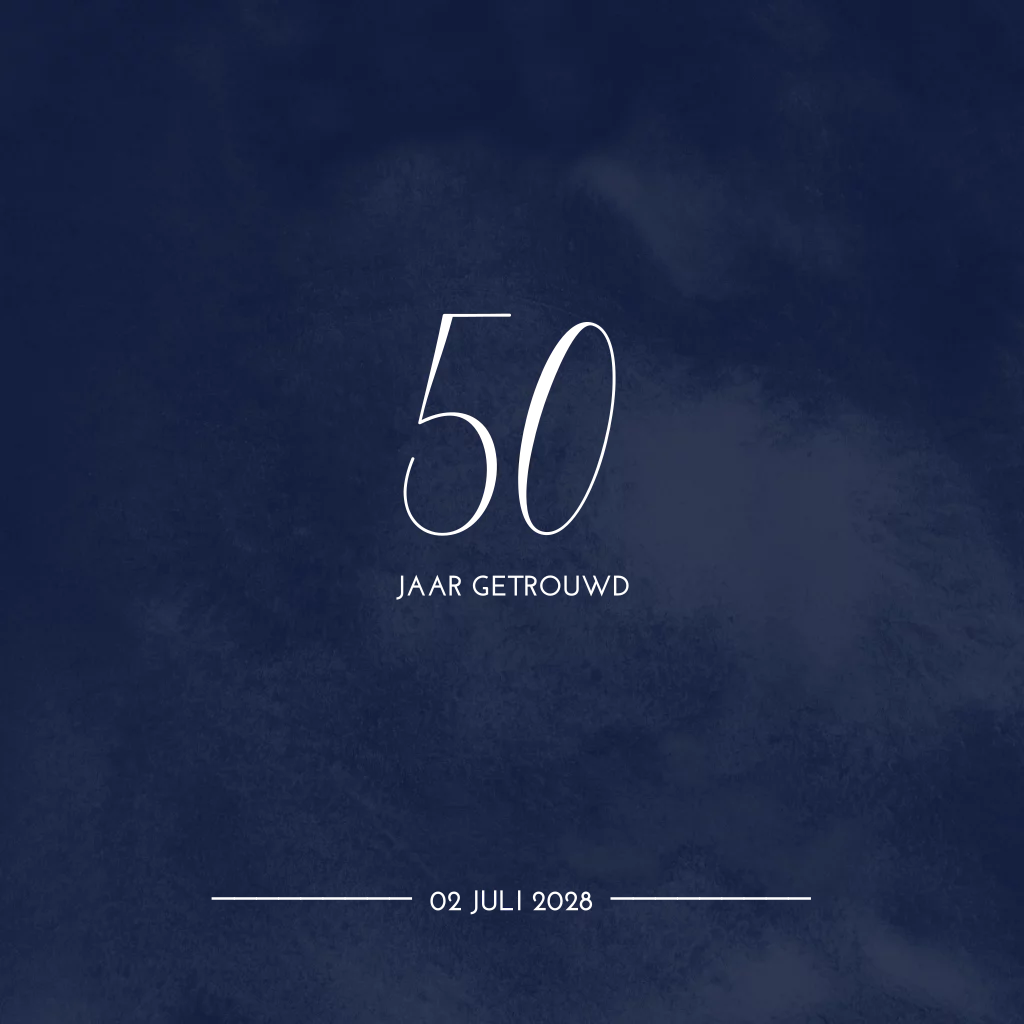 Een klassieke jubileumkaart met goudfolie op alle zijden en een donkerblauwe achtergrond. De kleur van deze achtergrond kan aangepast worden naar elke kleur die maar zou willen. De folie kan hierdoor naar keuze worden gemaakt. De hoeveelheid jaren getrouwd op deze kaart kan aangepast worden naar wat u nodig heeft.