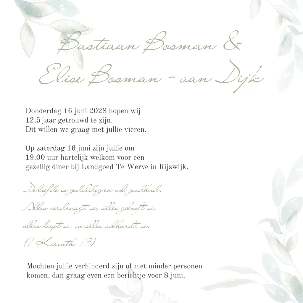 Een romantische jubileumkaart met bloemen voor 12,5 jaar getrouwd.