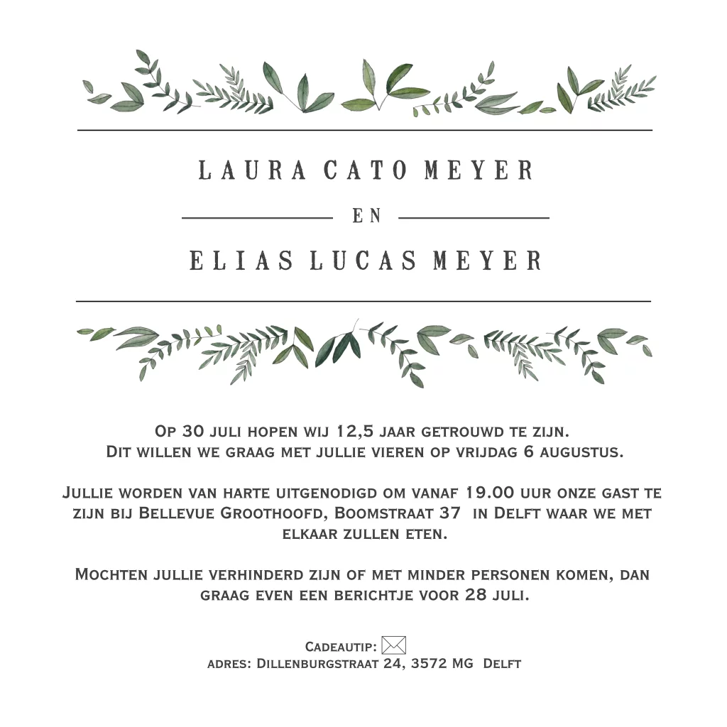 Een trend jubileumkaart met blaadjes voor 12,5-jarig huwelijk.