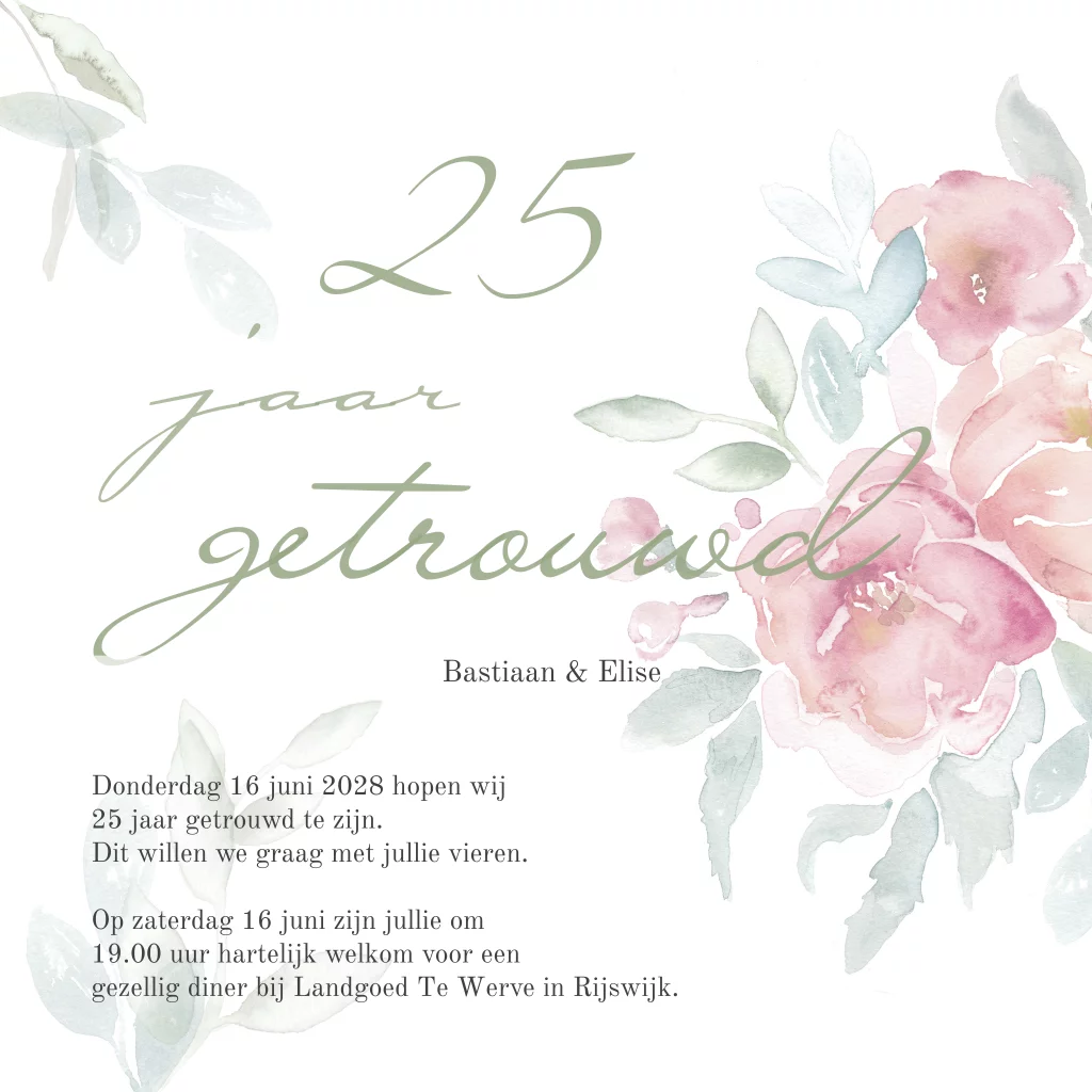 Een romantische jubileumkaart maken met bloemen voor 25-jarig getrouwd. De bloemen op deze kaart kunnen vervangen worden door andere bloemenpakketten uit de beeldbank.