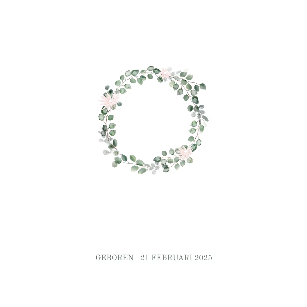 Botanisch geboortekaartje dochter met kransje en folie