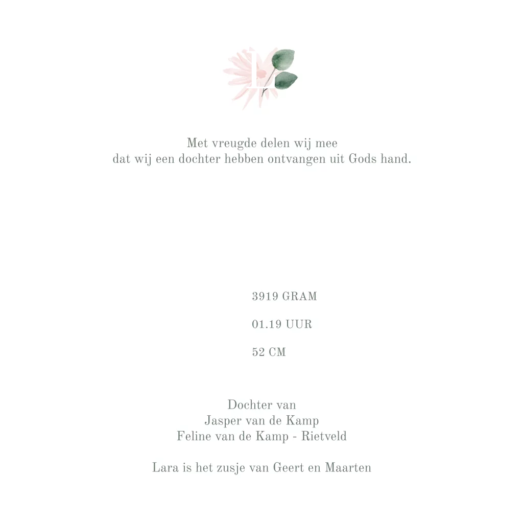 - Als het geboortekaartje naar wens is kun je enveloppen vooraf bestellen.