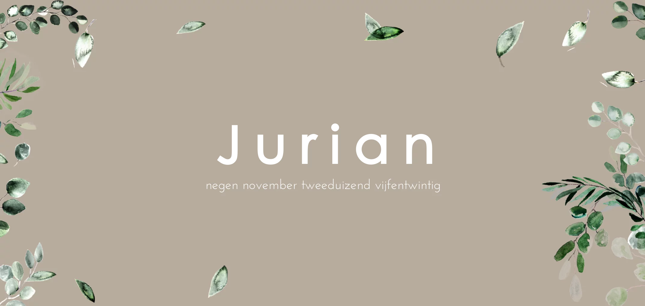 Botanisch geboortekaartje jongen met goudfolie en blaadjes