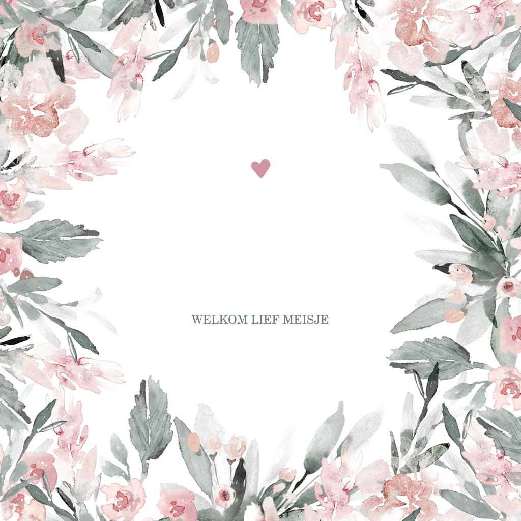 Geboortekaartje meisje met bloemen en zilverfolie