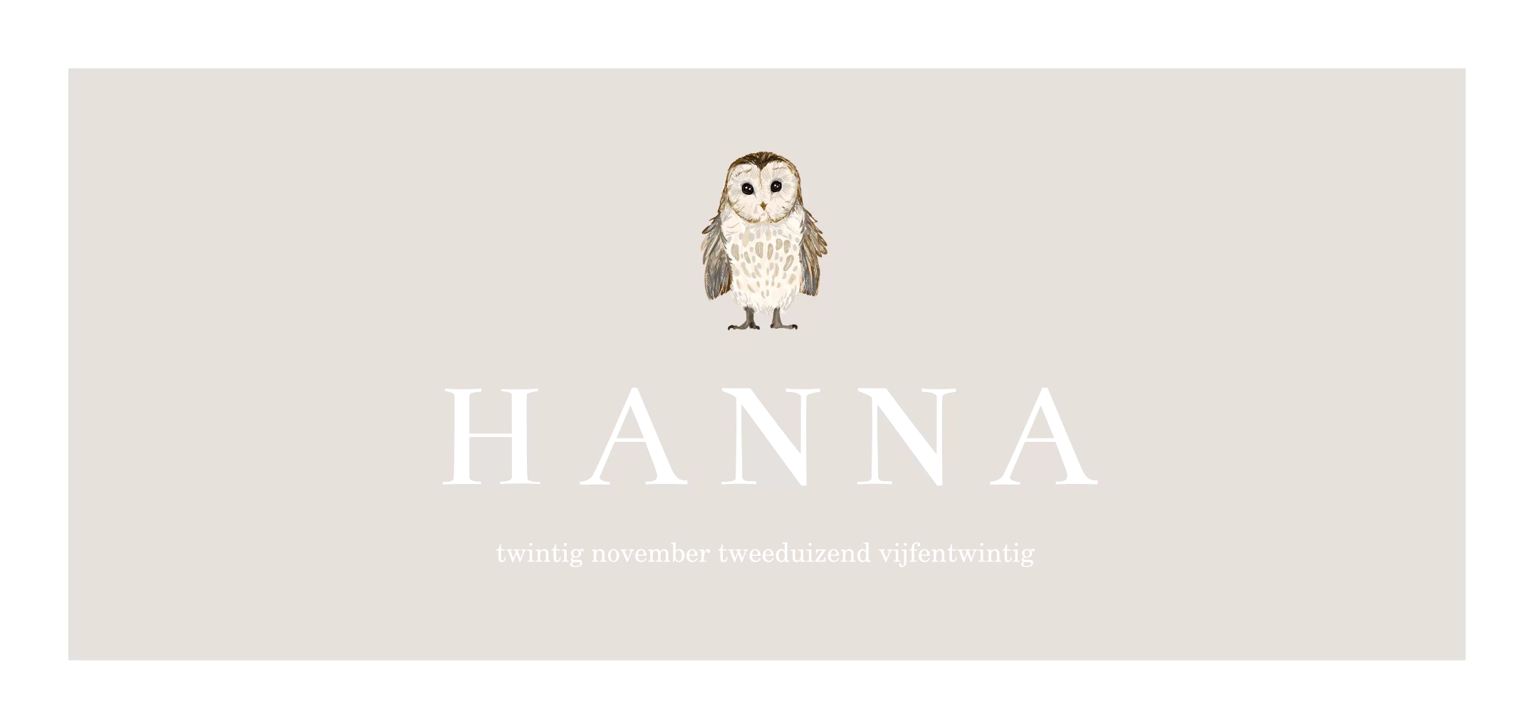 Eenvoudig geboortekaartje meisje met uiltje en roséfolie