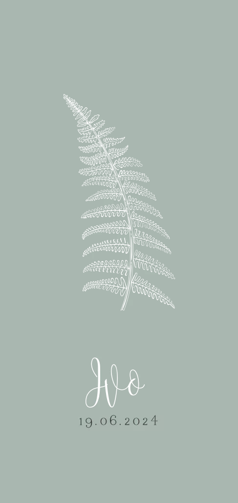 De mooie varen wordt in zilverfolie gedrukt. Je kunt ook een andere kleur folie kiezen in de editor. Een origineel geboortekaartje maak je bij ons zelf.