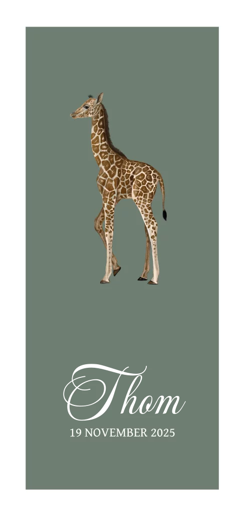 Minimalistisch geboortekaartje met giraf en goudfolie