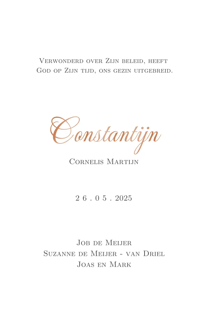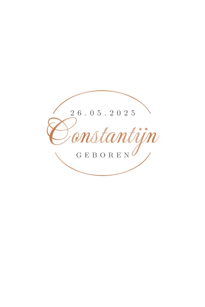 Op dit klassieke babykaartje wordt op alle zijden folie gedrukt. Wij hebben voor koperfolie gekozen maar je kunt in de editor ook een andere kleur folie kiezen.