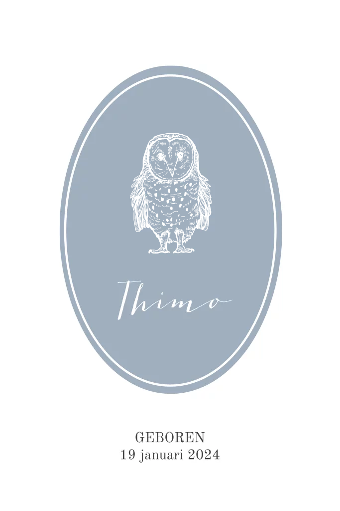 In het label schittert met zilverfolie een schattig uiltje. In de editor maak je zelf een mooi klassiek geboortekaartje.