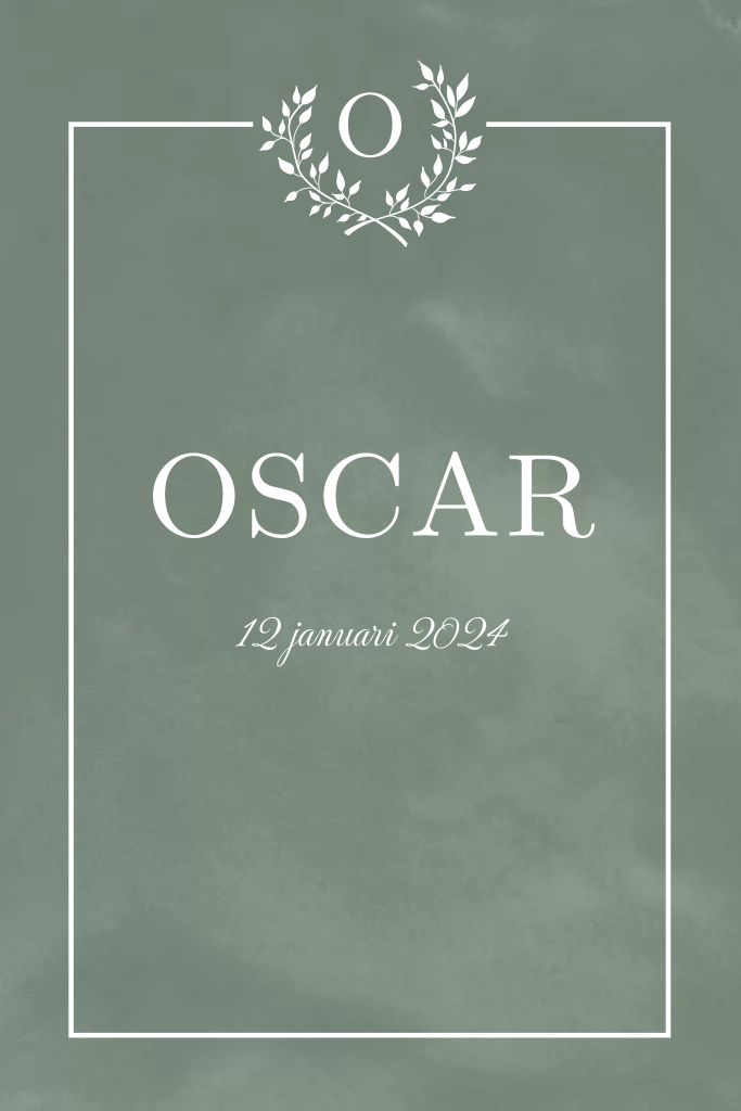 Op dit klassieke geboortekaartje worden alle teksten en details met zwart folie gedrukt. Je kunt in de editor ook een andere kleur folie of achtergrondkleur kiezen.