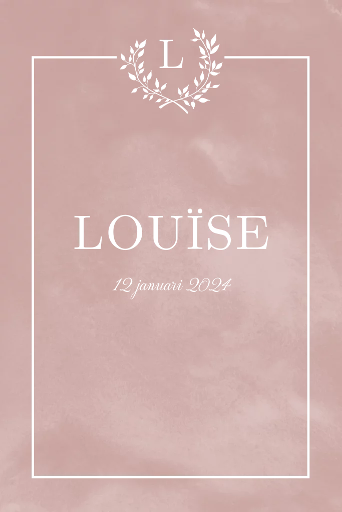 Klassiek geboortekaartje met kransje en rosefolie