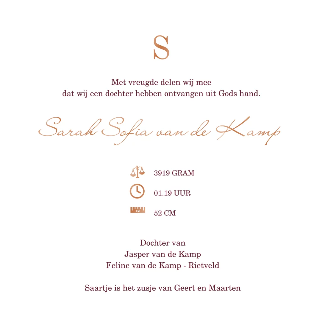 - Als het geboortekaartje naar wens is kun je enveloppen vooraf bestellen.