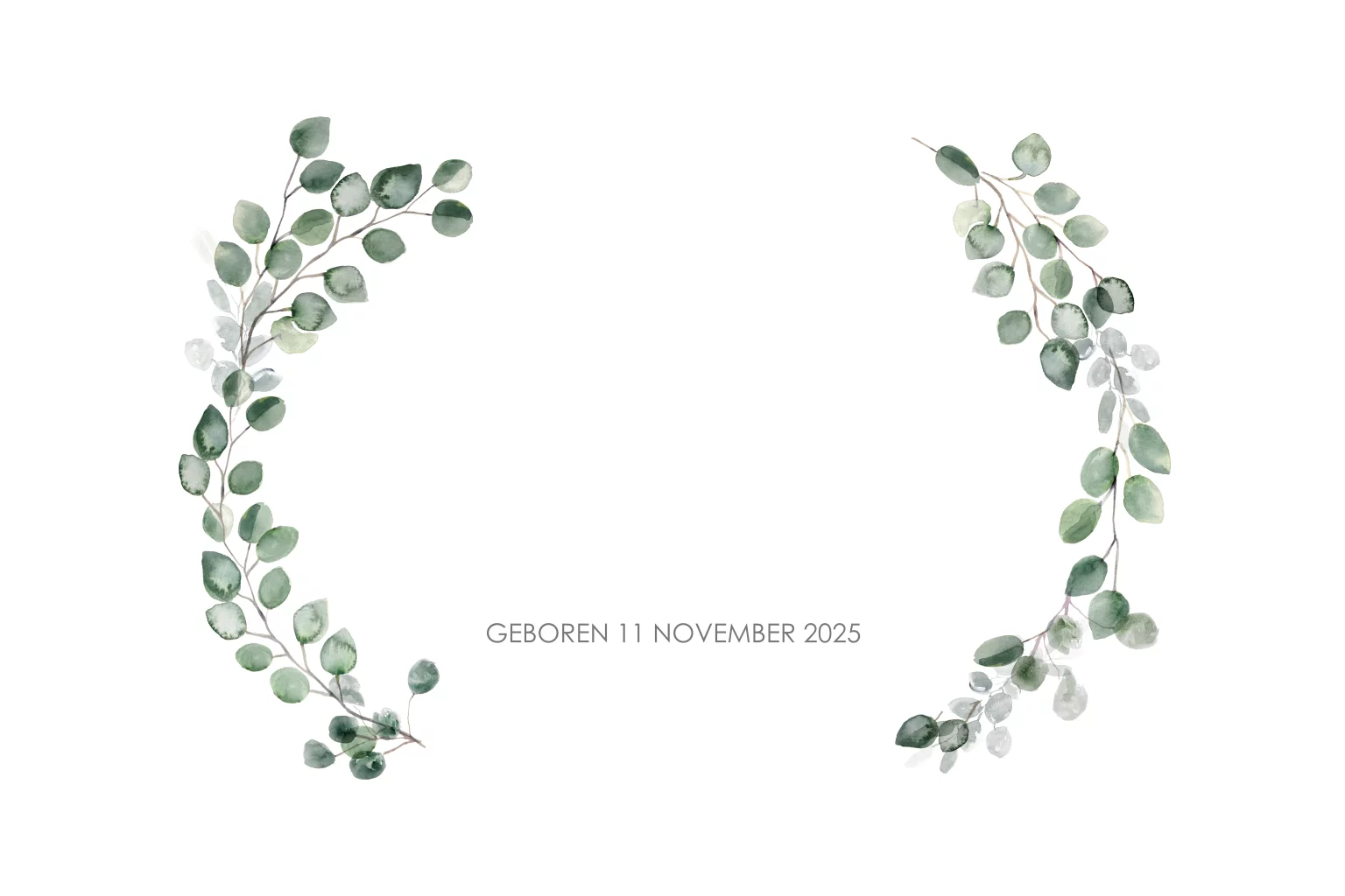 Botanisch geboortekaartje met goudfolie en blaadjes