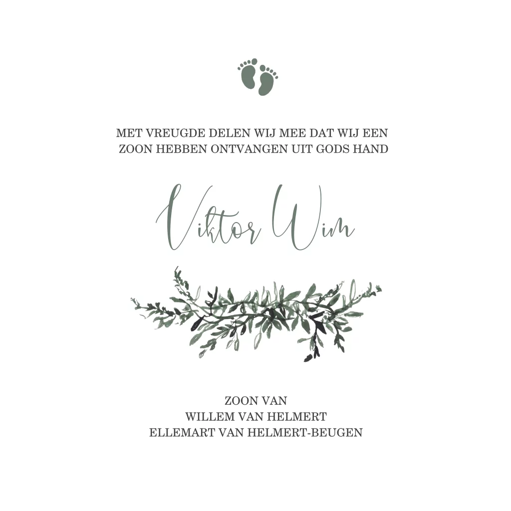Botanisch geboortekaartje jongen met goudfolie en voetjes