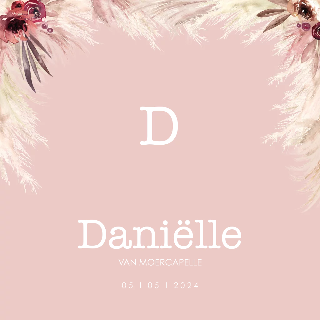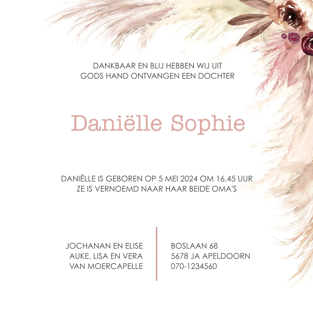 Geboortekaartje meisje met droogbloemen en zilverfolie