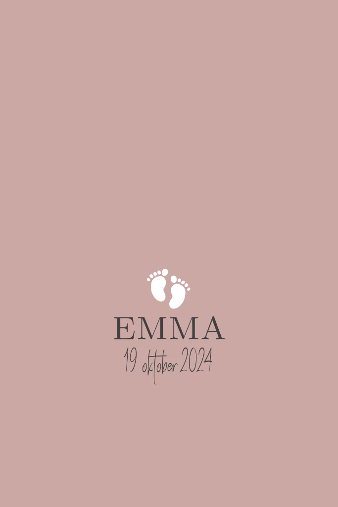 Een lief geboortekaartje met voetjes in roséfolie. Je kunt dit geboortekaartje helemaal naar eigen wens aanpassen in de editor.
