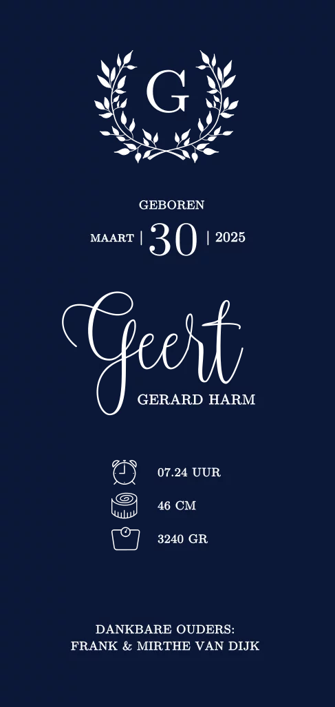 - Als het geboortekaartje naar wens is kun je enveloppen vooraf bestellen.